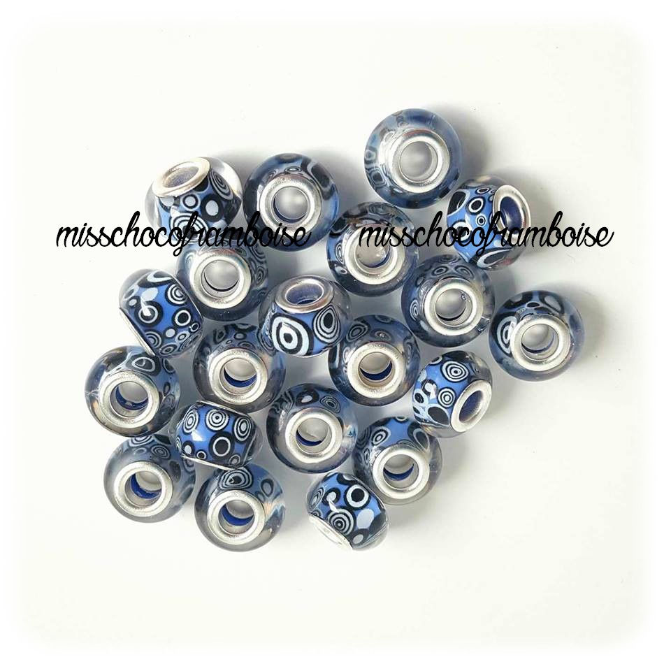 Perle européenne en acrylique bleu